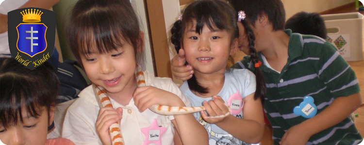 | 【釣り体験】 「Fishing!!!!!!」と大喜びの子ども達♪ 「Wow! Look it's a big fish!!」「Nice!」 みんな沢山のお魚が釣れたね 釣った後は、塩焼きと唐揚げみんな2匹づつ ペロリと食べちゃいました 【時の記念日】  6月10日は「時の記念日」671年に天智天皇の時に、水時計を置いて時刻制度 を定めた日です。(旧 4月25日) そんな説明を真剣に聞いていた子ども達。大切な 今の時間は二度と戻りません。大切に使っていこうね 【恵保育園の園児さんとの交流会】 _1.jpg) 今日は月1回の恵保育園との交流会!みんな仲良く、歌を歌ったり、ダンスをしたり 楽しみました♪ 恵保育園のお友達、ありがとう 【通常保育中のひとコマ】  いつもとっても仲良しな みんな♥ お歌を歌うのも外で遊ぶのも元気いっぱい!! あれっ??園長先生が赤ちゃんカマキリを見つけたみたい♪♪ ♫ Eensy weensy praying mantis~♫ なんてみんな歌ってました 【Open School】 _1.JPG) 1学期の保育参観です!!3日間に渡って交代で参加して頂きました。今回は、普段の縦割り 保育を見て頂きました。兄妹の様に仲の良い姿を見て頂けたのではないかと思います。 2学期の保育参観は、各クラスを見てもらいたいと思っています。保護者の皆様、お忙しい中 本当に有難うございました。 【プール遊び】  6月24日(月)からプール遊びを始めました。プール開きの日には、みんなでプールの周りに集まり 事故の無い様、プール開きをしました。お天気が悪い日が続き ナカナカ プールが入れませんが、7月 は沢山入れると良いですね |